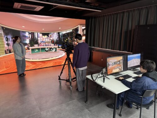 CGデザイン科を中心に、バーチャルプロダクションなどCGに関わる映像撮影・編集の授業で使用します。バーチャルプロダクションについては静岡県内初の導入となり、業界からも注目されています。モーションキャプチャーシステムも完備されていて、現場で必要な機材の取り扱いやワークフローをチームで学び、VFXやリアルタイムレンダリング技術を身に付けます。