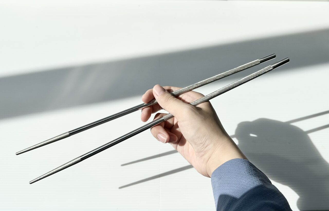溶射によって表面にザラつきを出し、滑りにくくした実用的な菜箸。見た目も手触りもこだわった一品です。