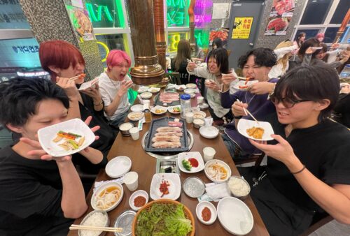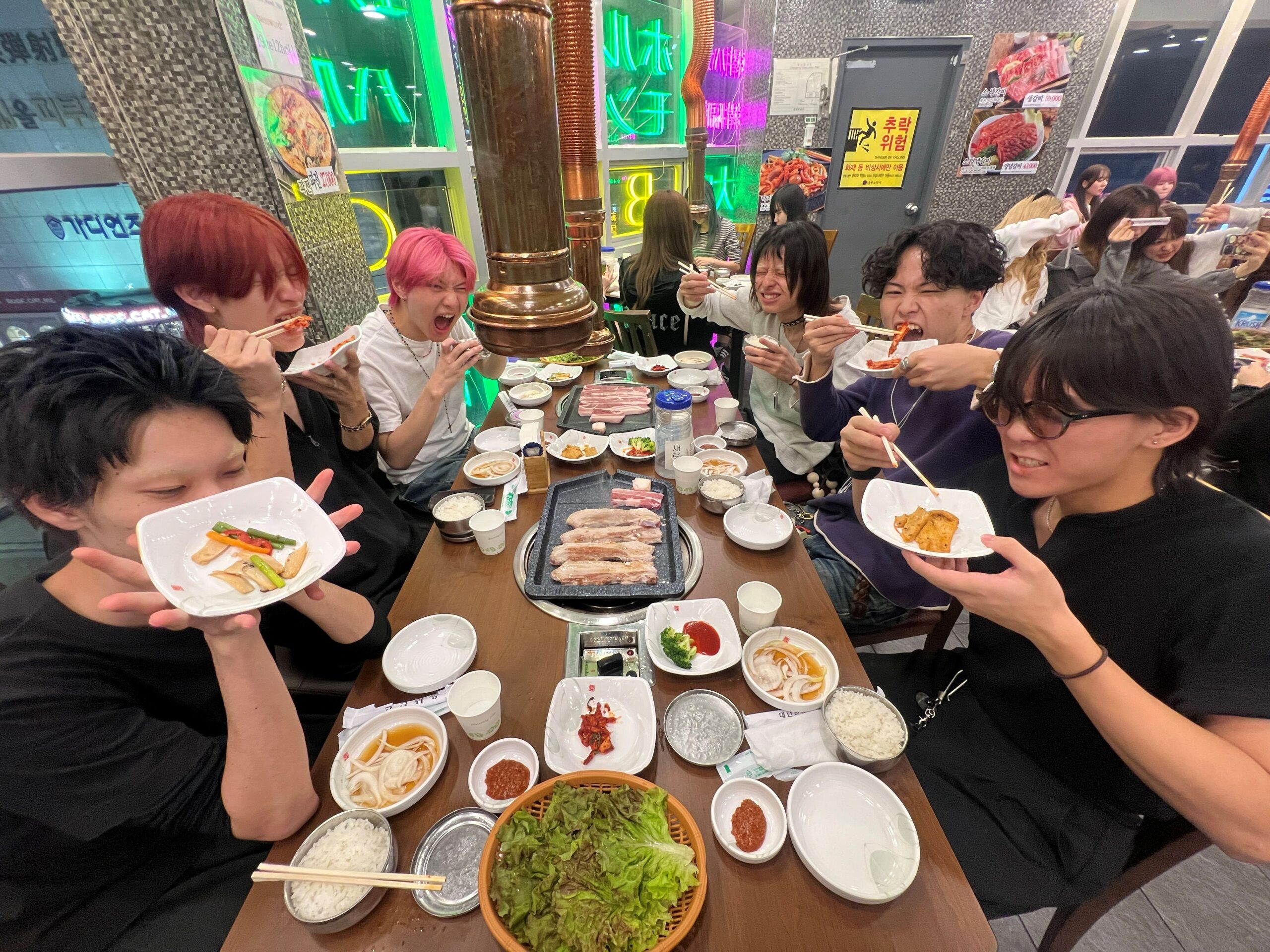1日目の夕方、韓国に到着。さっそく夕食には本場のサムギョプサルを堪能し、旅の始まりを美味しくスタートしました。