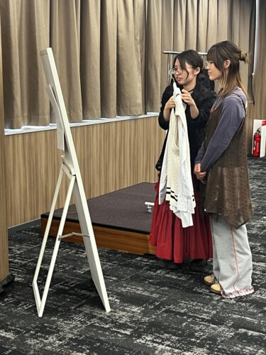 実際の店舗を想定したロールプレイング形式で、お客様役の1年生に対して接客を行いました。