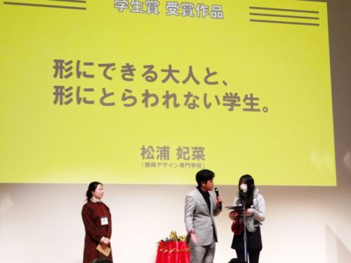 授業成果の場として、 毎年「しずおかコピー大賞」に2年生と、3年生が応募しています。